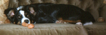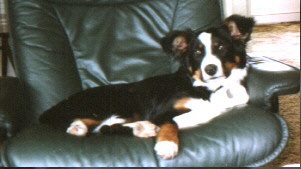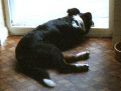 My Mum and Dad's current dog, Barney, was rescued at approx 6 months old, so was born in or around December 1997. He looks cute in these pictures, but you should see the havoc he is leaving behind him.